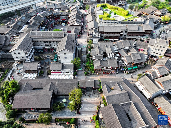 这是10月9日拍摄的重庆磁器口古镇景象(无人机照片)。