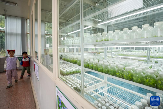 10月13日,游客在北京花乡花木集团的组培实验室外参观。