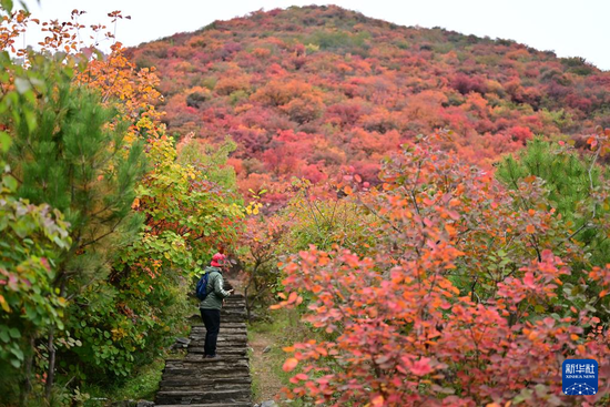 近日,位于北京市房山区的坡峰岭景区迎来观赏红叶的最好时节,吸引众多市民游客前来观赏。