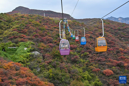 10月20日,人们在坡峰岭景区乘坐缆车观光。