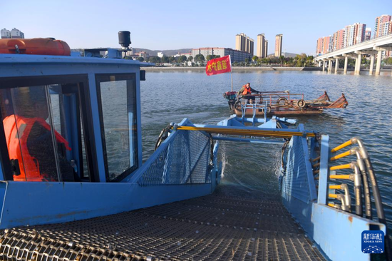 11月28日,清漂志愿者在淅川县鹳河流域城区段作业。
