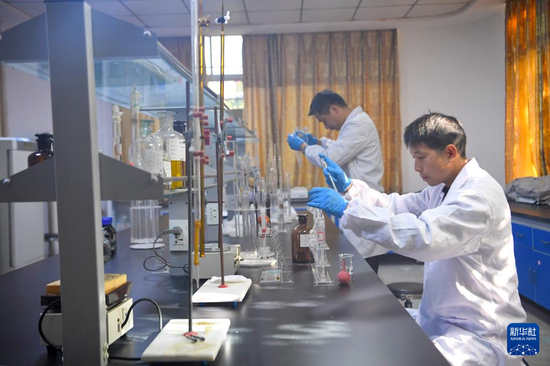 11月28日,在南阳市生态环境局淅川分局环境监测站,工作人员在进行水质监测。