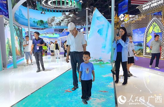 人民网南宁9月21日电 (付华周)9月17日—21日,第22届中国—东盟博览会“魅力之城”桂林展区惊艳亮相。现场以AI技术为笔、桂林山水为卷,打造出一场虚实交织的“山水奇旅”,吸引众多市民游客排起长队,争相体验“AI+文旅”的新奇玩法,感受不一样的东博会。