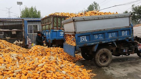 村民到达收储点,正在卸玉米。曹金磊摄