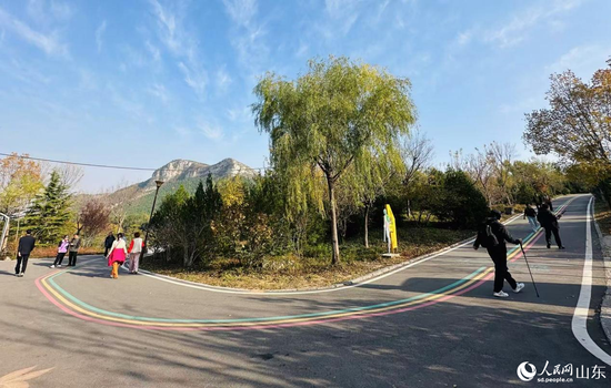 济南市千佛山—佛慧山无障碍绿道全长2.2公里,打通6处无障碍断点,方便腿脚不便的市民游客前来登山打卡。人民网 乔姝摄