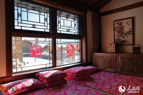 白山市抚松县雪乡客栈“东北风”浓郁的民宿客栈。人民网记者 李洋摄