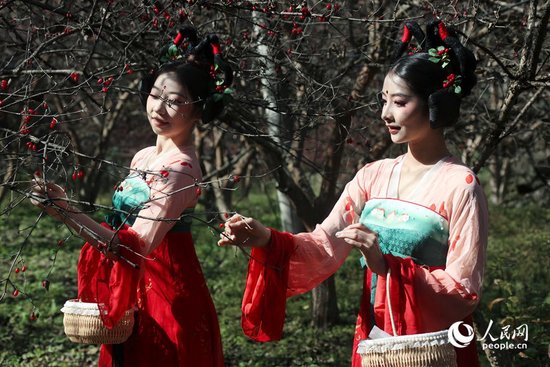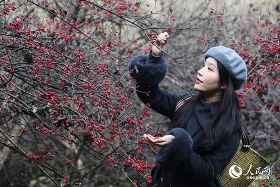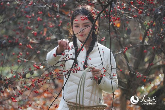 山茱萸丰收,吸引不少游客前来体验采摘。人民网记者 霍亚平摄