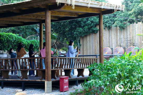 游客在园区体验射箭。人民网记者 李唯一摄