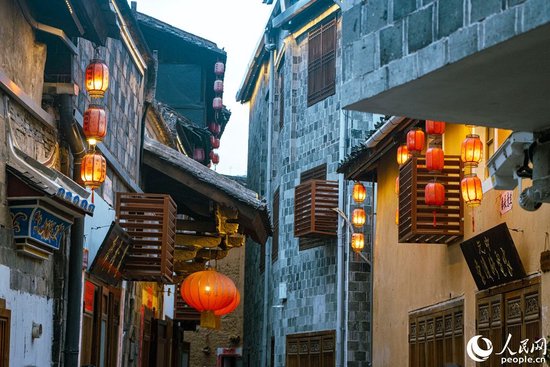 打造夜间景观的鹏程历史文化街区。人民网 林铭贤摄