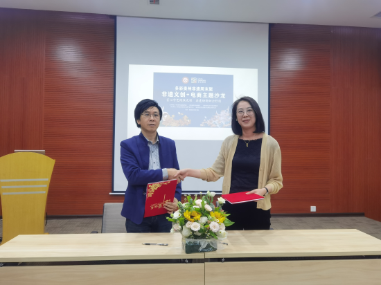 沙龙上,贵阳信息科技学院与贵州省多彩贵州文化产业博览会有限公司签订产教融合校企合作协议,促进非遗文创企业与高校、电商的合作。