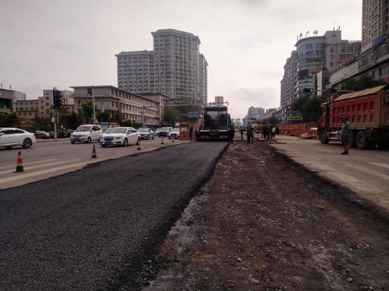 8月10日,记者在延吉市爱丹路延边大学附属医院门前看到,该路段的雨污分流改造项目已完工,正在实施路面修复工作。