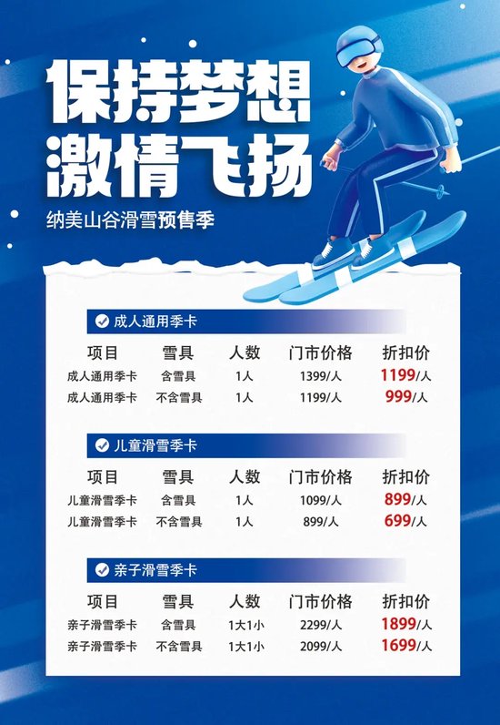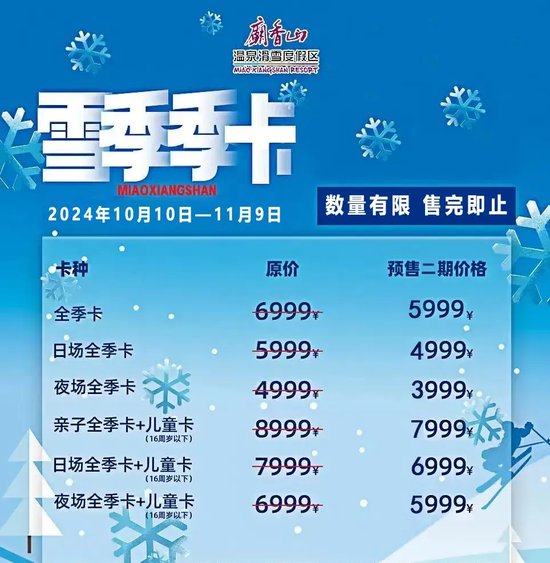 雪季卡优惠预售时间:2024年10月10日—2024年10月31日