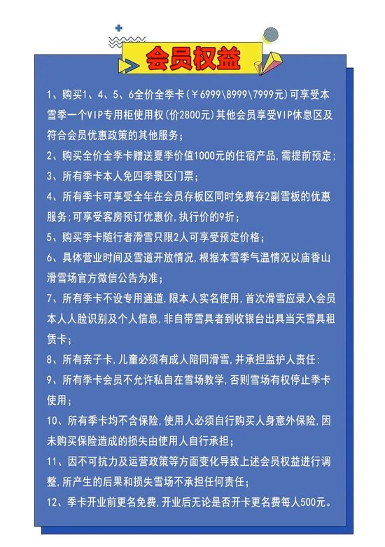 3、成人通用季卡限年龄17周岁至60周岁;儿童季卡限年龄2周岁至16周岁,办理时需提供相关证明;亲子季卡需提供相关材料证明家庭型亲子身份。