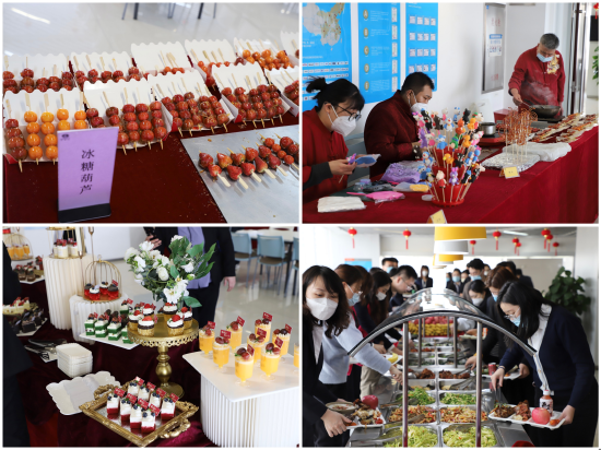 分行食堂为员工提供了蛋糕、甜品、海鲜、水果等近20种食物,现场气氛热烈,各色美食不断挑动大家的味蕾,分行还组织了特色美食摊位,现场画糖人、捏泥人、做糖葫芦,大家踏入食堂后纷纷开始拍照晒圈,共同感受着沈阳分行11周岁的快乐。