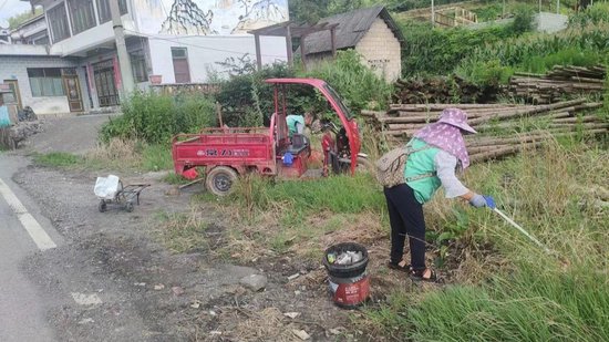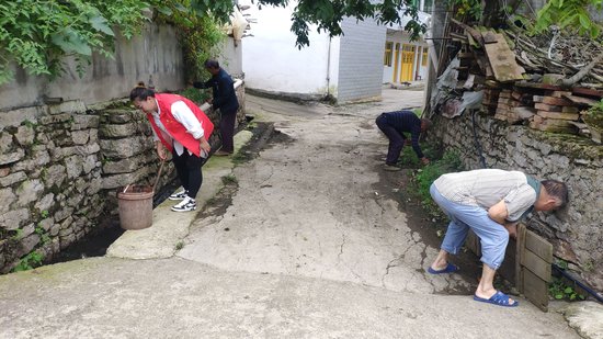 “近期降雨频繁,地面杂物,沉淀物堆积,造成我村四组部分排水沟堵塞,给村民生活带来不便,为防止排水沟散发异味,影响茶山村的环境。我村迅速组织党员干部、群众志愿者对四组排水沟进行清理。”茶山村党支部书记王超说道。