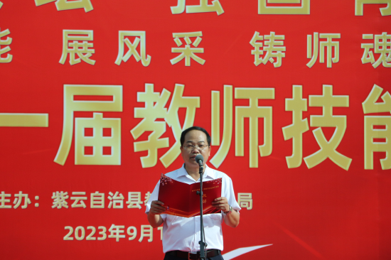 9月10日上午,紫云自治县第一届教师技能展示活动在印山广场举行。紫云自治县委常委、县委宣传部部长、县委教育工委书记甘决,县委教育工委常务副书记、县人民政府副县长李树华出席活动并全程参与。