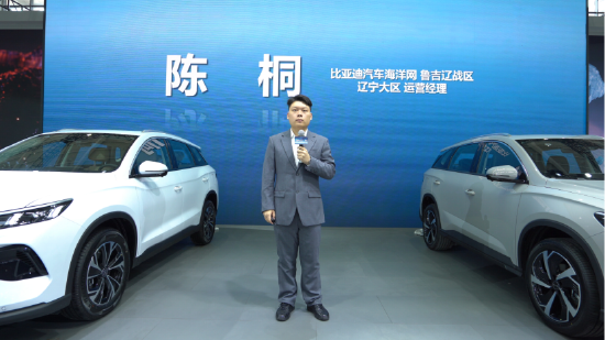 上午十点四十分,在沈阳国际展览中心,比亚迪海洋网鲁吉辽战区辽宁大区运营经理陈桐先生宣讲——全新中型都市智电SUV——海狮05DM-i首发亮相,向媒体大众展示了其强大的技术实力与领航力。