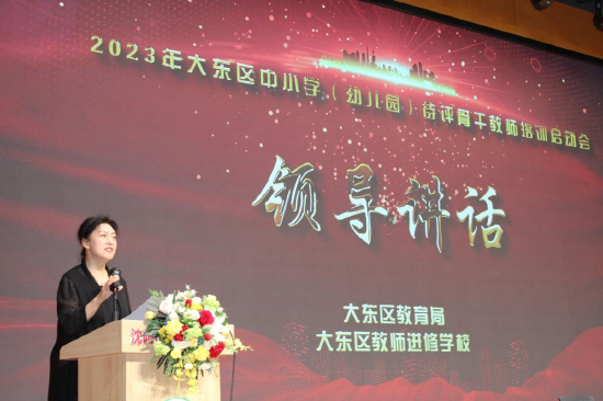 大东区教师进修学校辛红校长以《让培训为教师成长赋能》为题,对《2023年待评骨干教师培训方案》进行了全面解读。