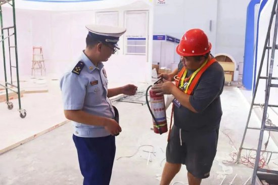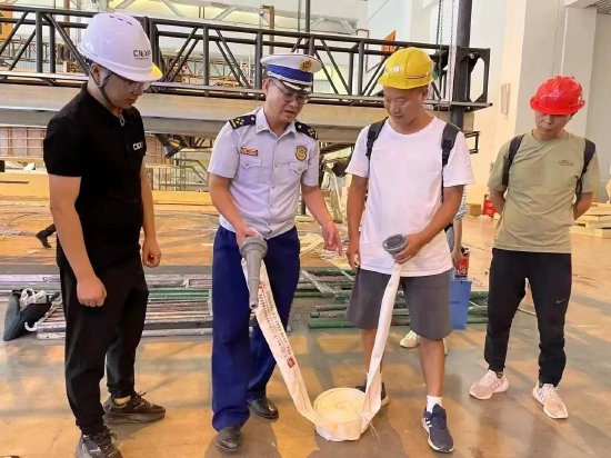 他工作认真负责,教会了我们许多东西,比如场馆内的风险点、室内及地下消火栓的位置、施工过程中可能存在的安全隐患如何自检自查、电气线路要合规敷设、不要动火作业还有建筑垃圾及时收整,不能占用堵塞消防通道......他走走逛逛,一旦发现隐患会严格要求我们立即整改。