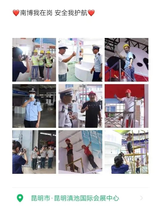 每天最开心的不是工作结束,而是看着场馆内的一切从无到有,作为参与其中的一员,打心底感到自豪。在这里,消防、公安的同志们提供着热情且专业的技术服务,场馆的每一位工作人员都在安全稳定的环境下坚守着自己的岗位,我相信通过大家的齐心协力,布展工作一定可以有条不紊、精准高效的进行,让我们共同见证多方协作的硕果,见证南博盛会的开启!