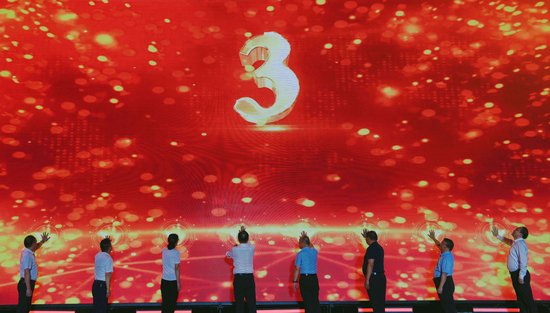 出席活动领导上台触摸大屏幕启动仪式。