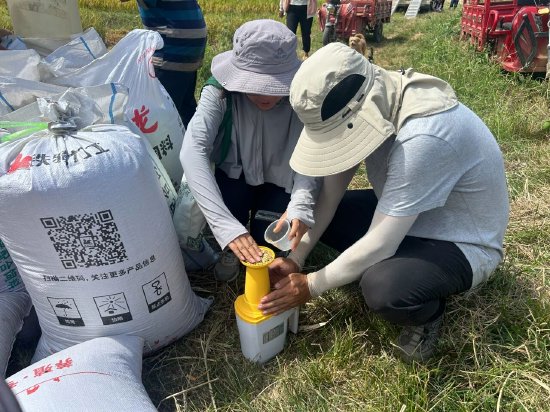 专家组听取了试验示范样板田实施情况汇报,现场考察了田间水稻长势。随后,专家组按照《全国粮食高产创建测产验收办法》随机选取3块样板田及1块农户常规栽培技术的田块作为对照,采用收割机进行全田收获。